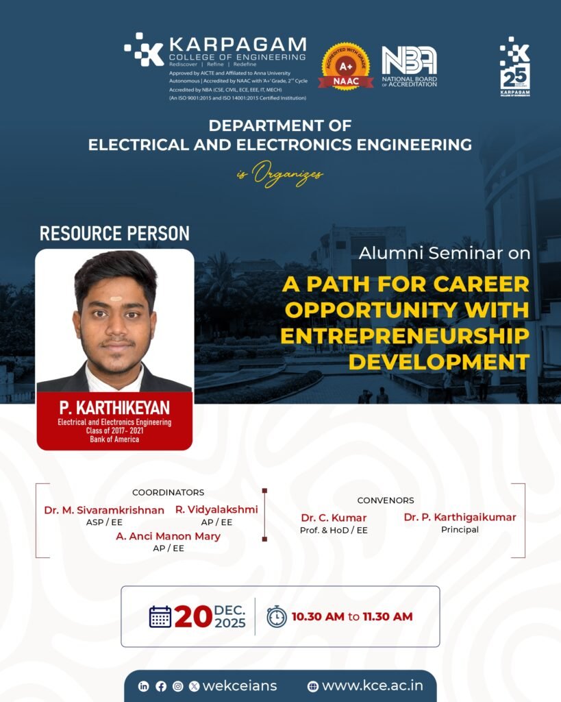 Alumni Seminar on A Path for Career Opportunity with Entrepreneurship Development February 18, 2026 Category: News and Events Comments Off on Alumni Seminar on A Path for Career Opportunity with Entrepreneurship Development Date : 20.12.2025
