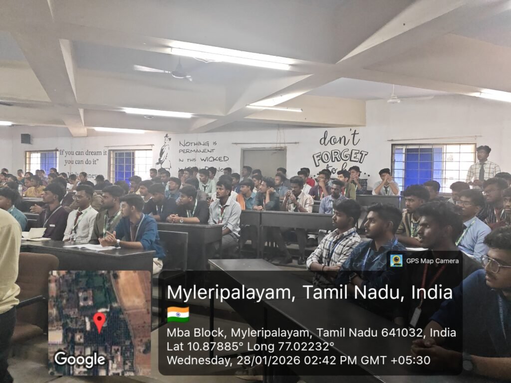 The School of Management Studies, Karpagam Innovation Centre, and Higher Education Cell of Karpagam College of Engineering jointly organized an International Expert Talk on “Building Sustainable Business in the Era of AI” on 28th January 2026 at MG Hall. The program was conducted to provide global insights into the growing influence of Artificial Intelligence in modern business practices and to promote awareness of sustainable and technology-driven business development among students and faculty members.