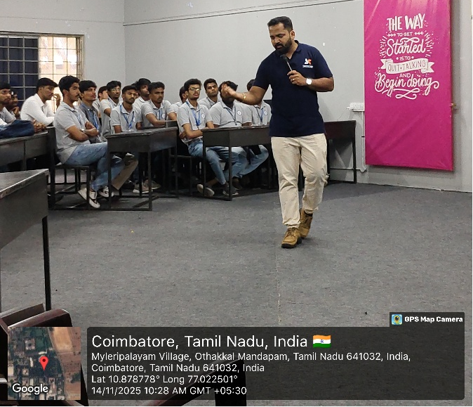 School of Management Studies at Karpagam College of Engineering organized a one-day workshop titled “Click & Conquer: Digital Marketing Strategies” on 14th November 2025 for MBA Batch 2024–2026. The session was conducted by Dr. Vibinchandar Selvaraj, Founder and Chairman of Decodet Technologies, Hyderabad. The objective of the workshop was to provide students with practical exposure to the evolving field of digital marketing, enabling them to understand how digital platforms are reshaping business communication, branding, and consumer engagement. The resource person emphasized the growing importance of digital strategies in competitive market environments and explained how companies are using tools such as SEO, social media marketing, content creation, performance analytics, and AI-driven automation to scale their marketing outcomes.