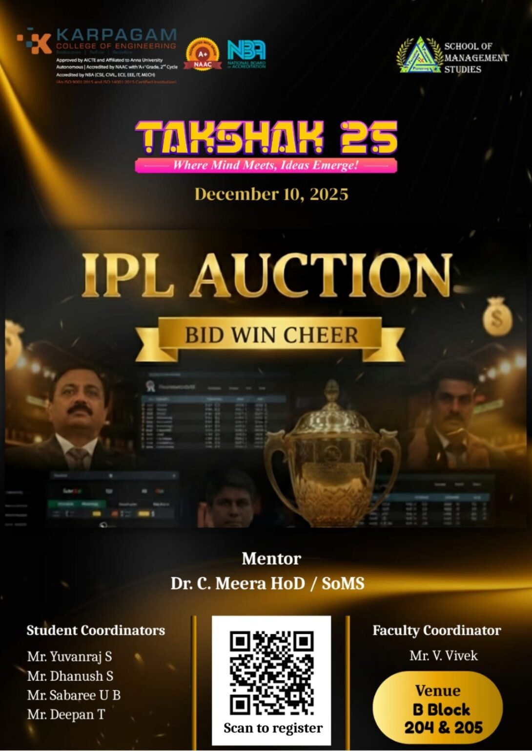 7th National Level Management Fest – “Takshak 2025” at Karpagam College of Engineering (Autonomous)